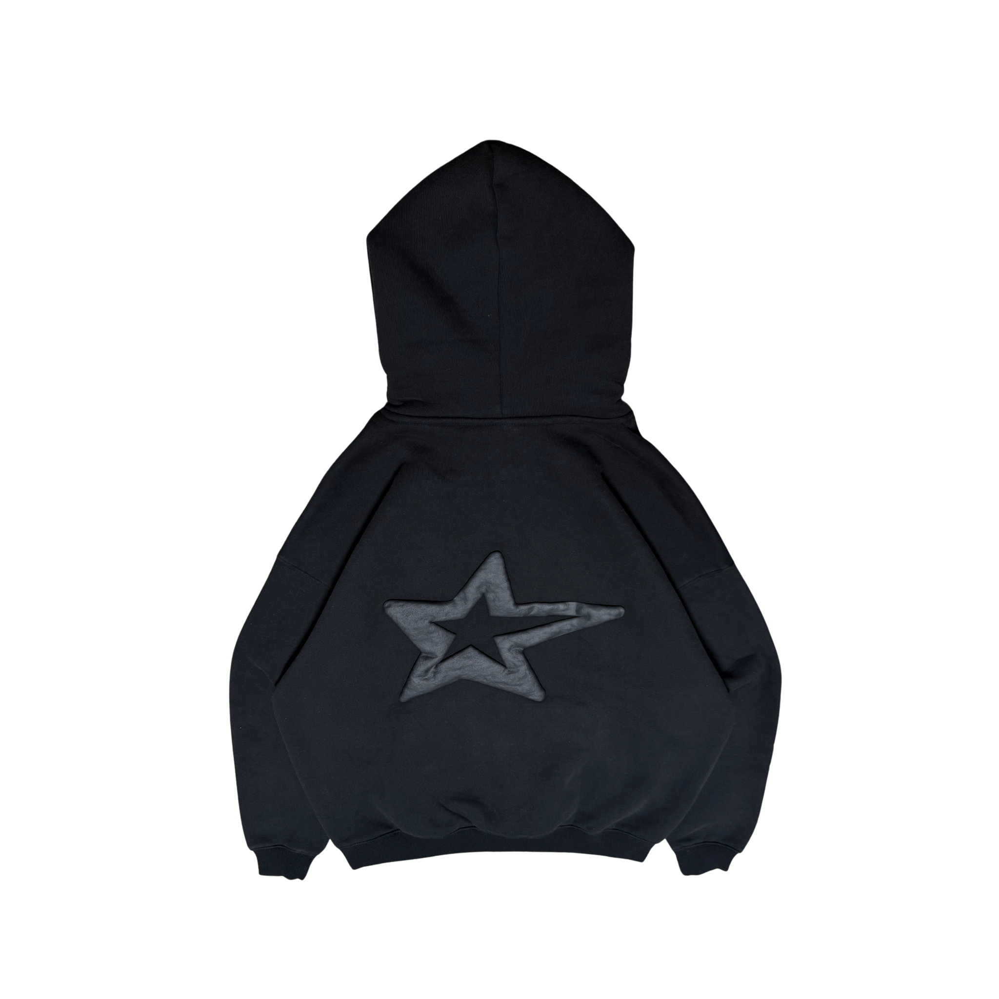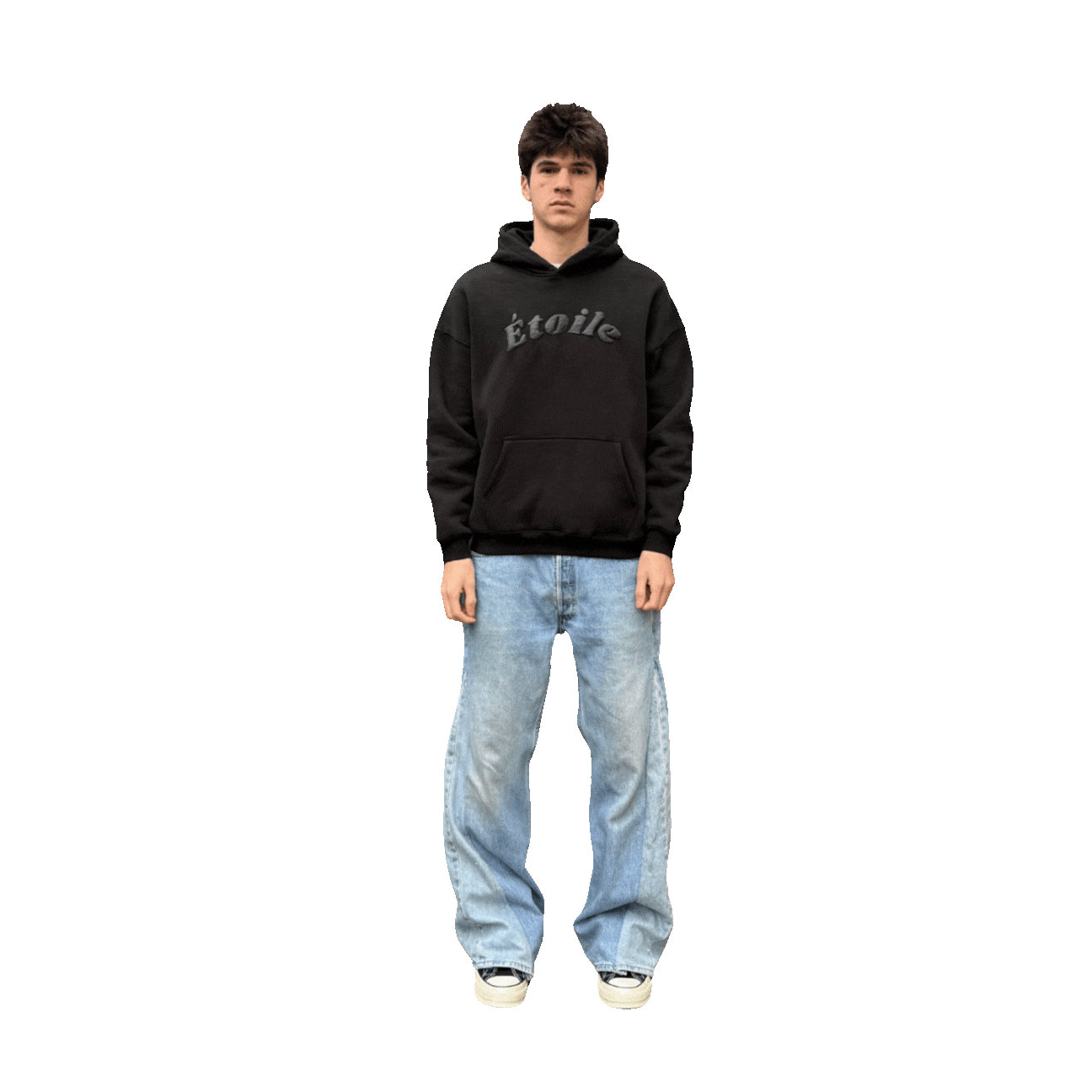 A clean black hoodie with bold puff print detailing. Étoile stands out on the front in raised texture, while a striking star hits the back. A streetwear essential you can dress up or keep casual, classic, crisp, and effortlessly cool.